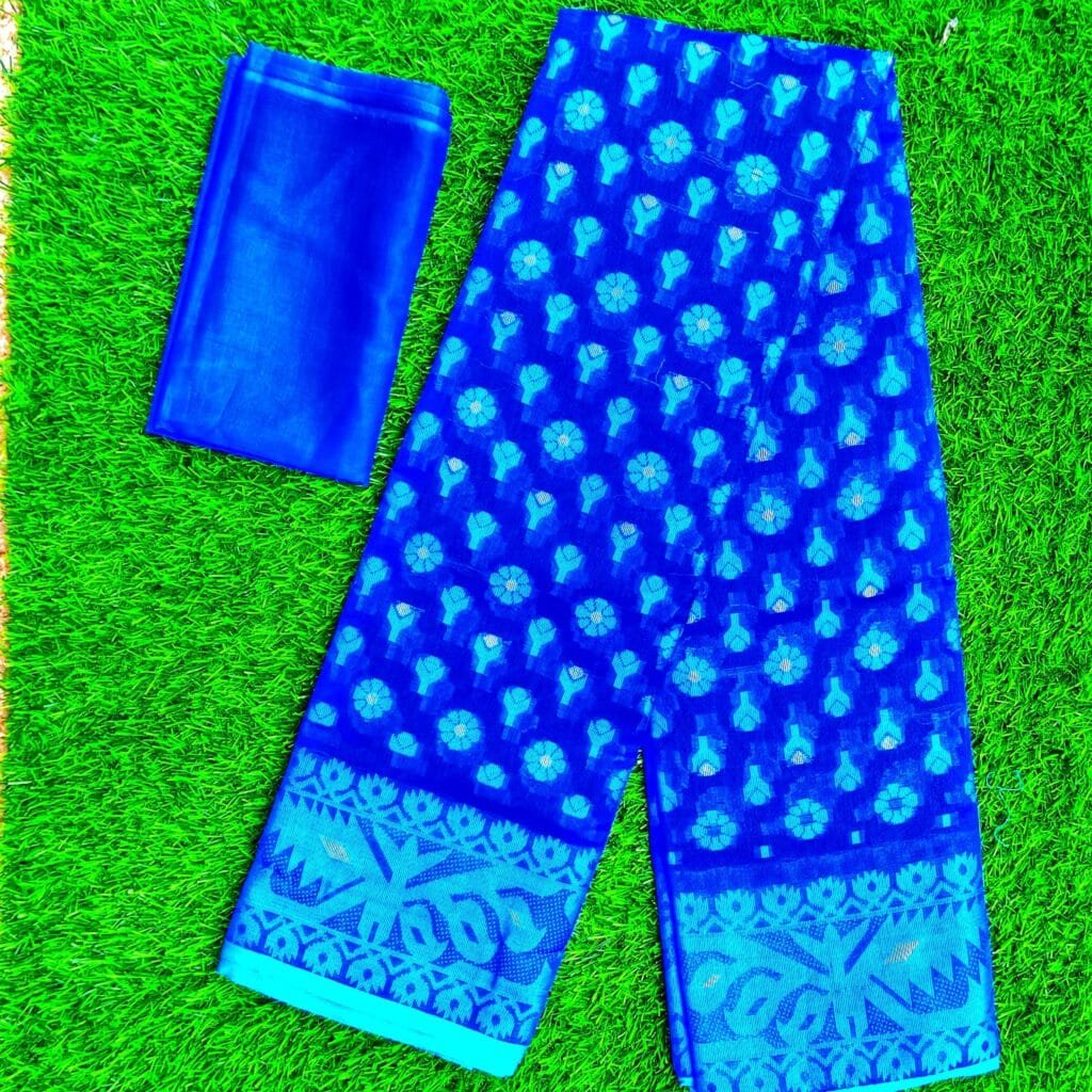 জামদানি শাড়ি নাকফুল ডিজাইন ব্লাউজ সহ (নীল কালার)