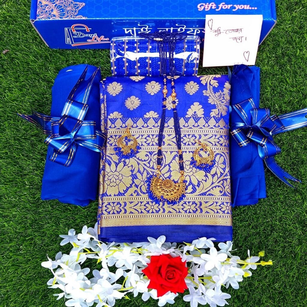 একটি প্রিমিয়াম মানের কাতান শাড়ি (নীল)