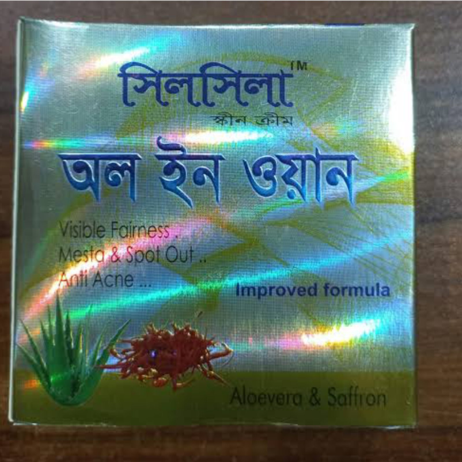 silsila All-in-One Cream হল একটি অলরাউন্ড স্কিন কেয়ার সলিউশন, যা ত্বকের কালচে ভাব, ব্রণের দাগ, বয়সের ছাপ এবং চোখের নিচের কালো দাগ দূর করতে সাহায্য করে। এতে রয়েছে অ্যালোভেরা, জাফরান ও ভিটামিনসমূহ যা ত্বককে করে তোলে উজ্জ্বল ও মসৃণ। মাত্র ৭–১৮ দিনের ব্যবহারে পার্থক্য চোখে পড়বে